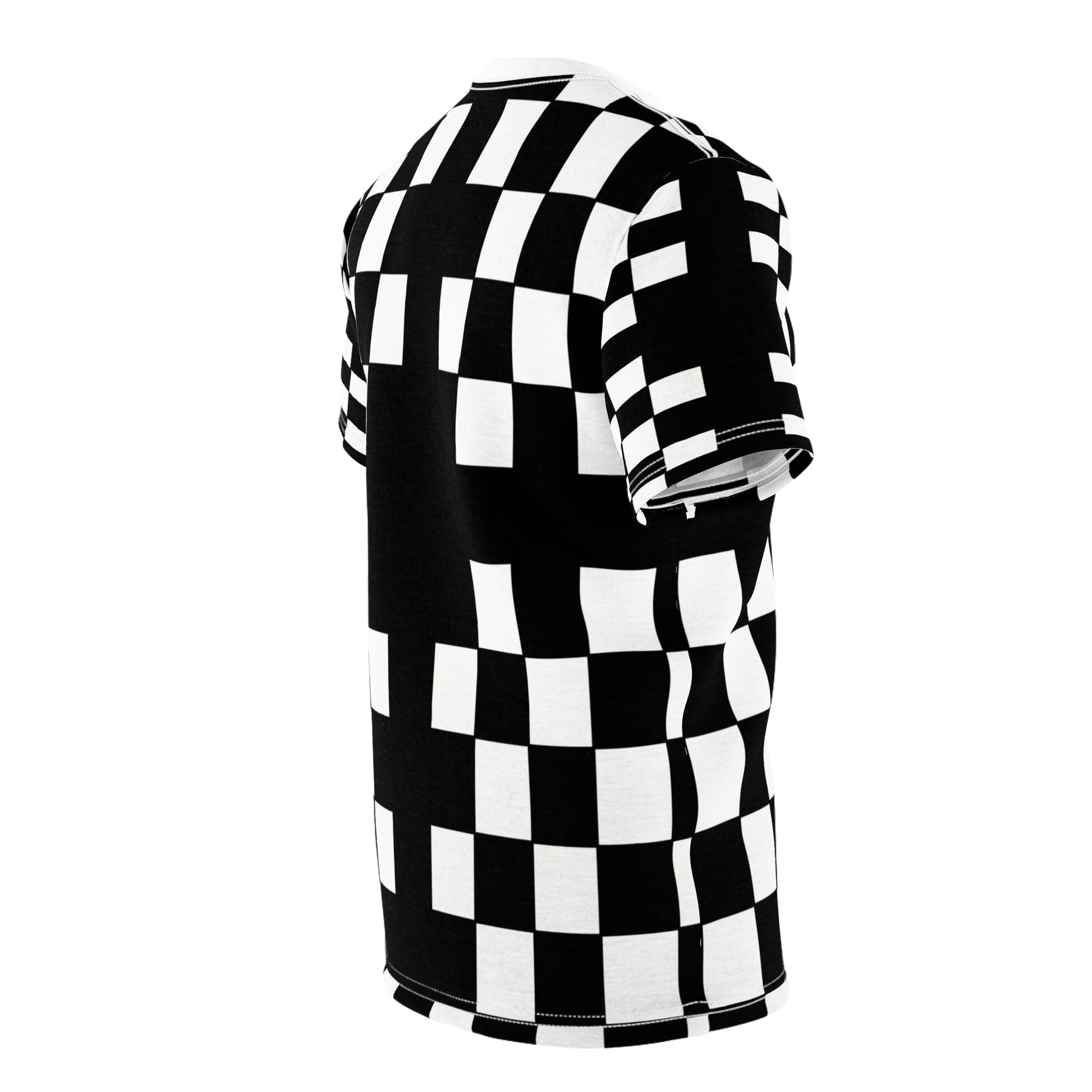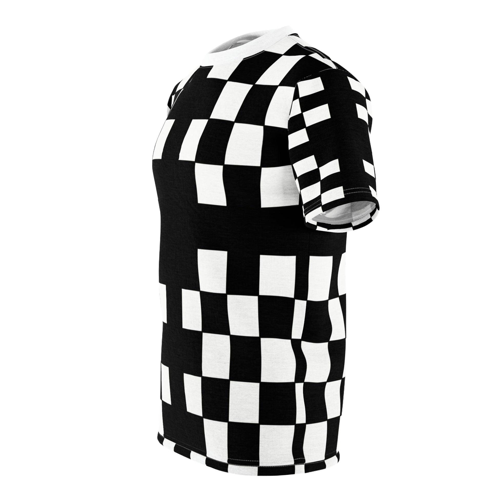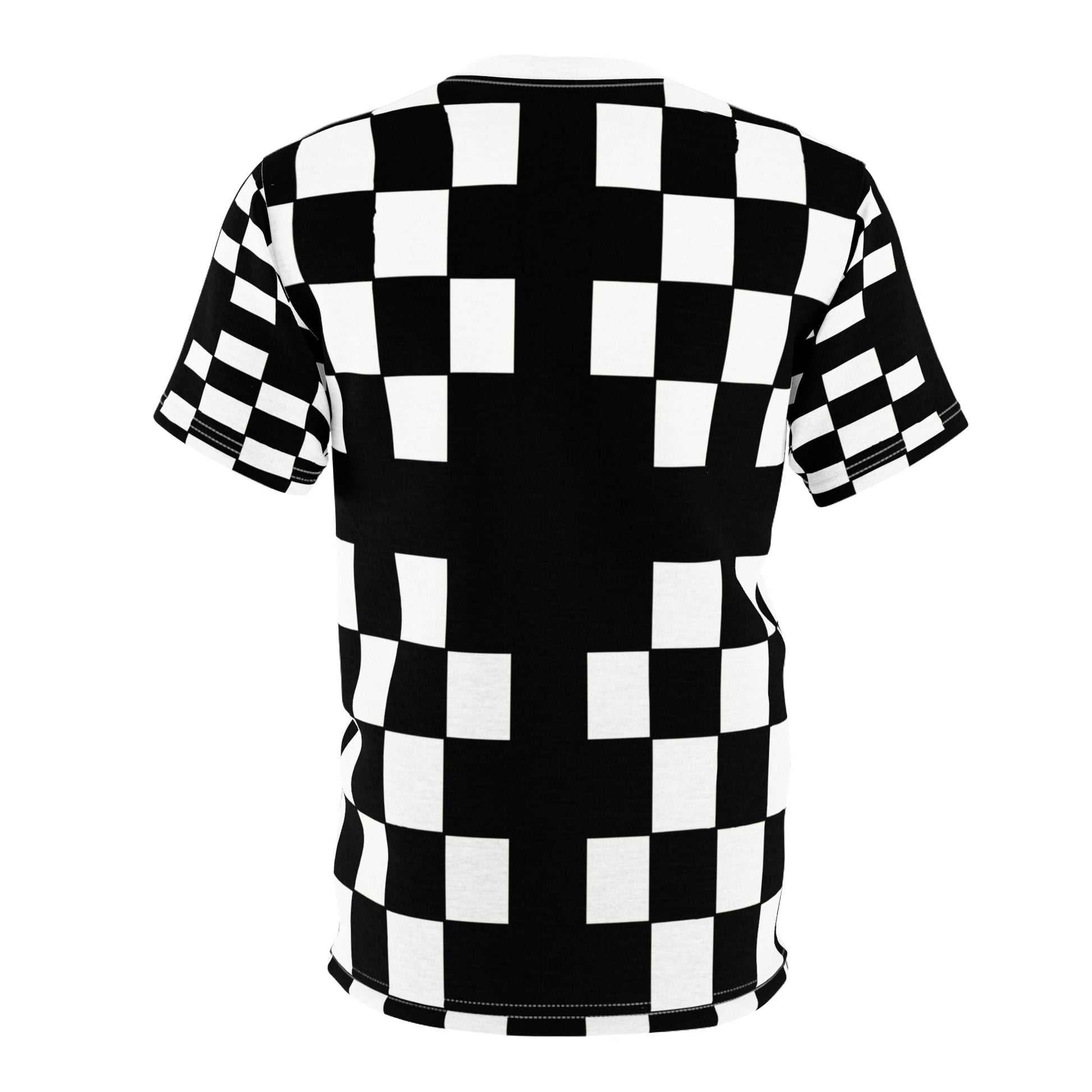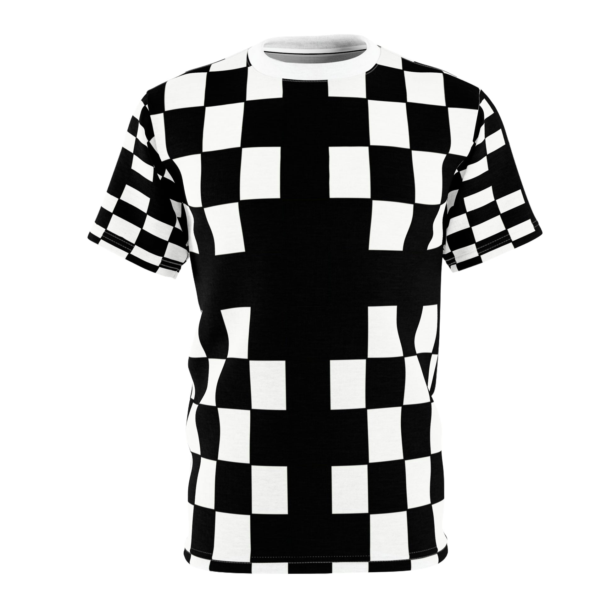 This striking black-and-white t-shirt design draws inspiration from 1960s