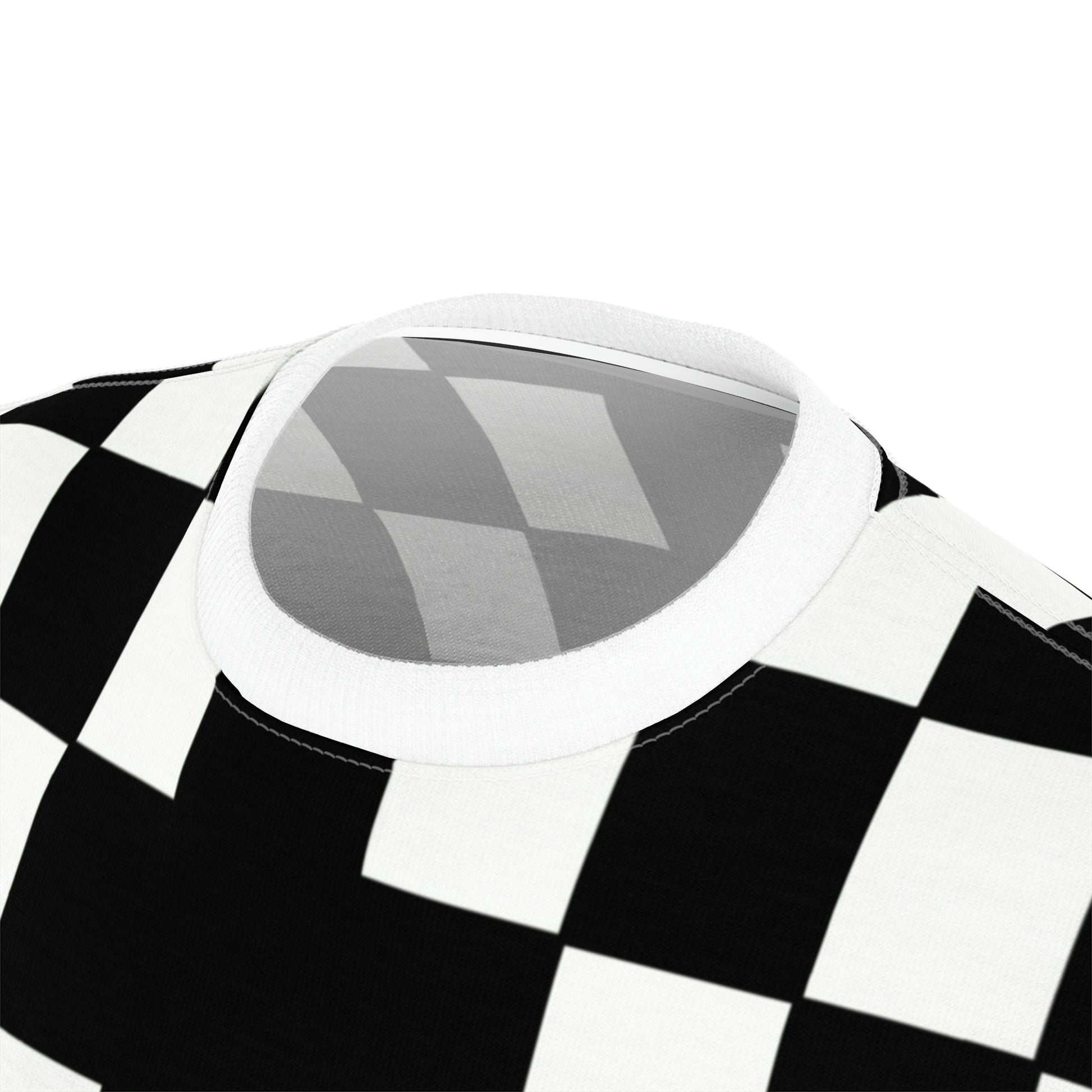 fashion, featuring a retro checkerboard pattern with a modern twist. The