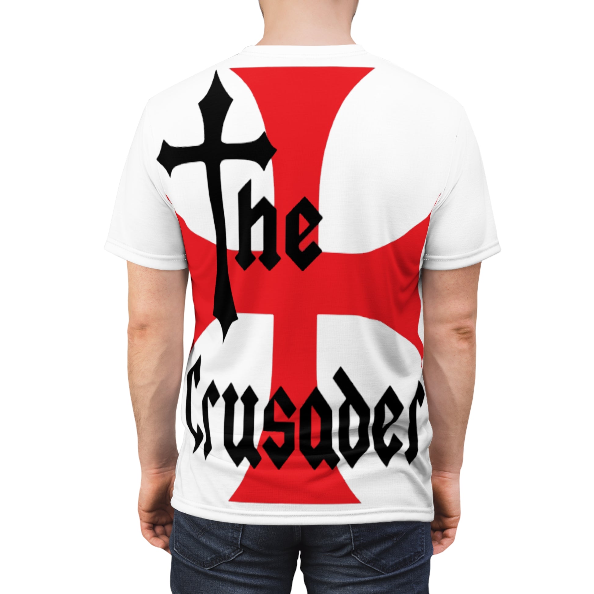 This bold unisex tee features a striking red crusader cross with gothic typography spelling out "The Crusader," cleverly incorporating the cross itself as the letter T. The design evokes the spirit of medieval knights, Templar symbolism, and gothic heritage. With a clean black, white, and red palette, it's a powerful piece for lovers of historical and gothic style with a modern cut.