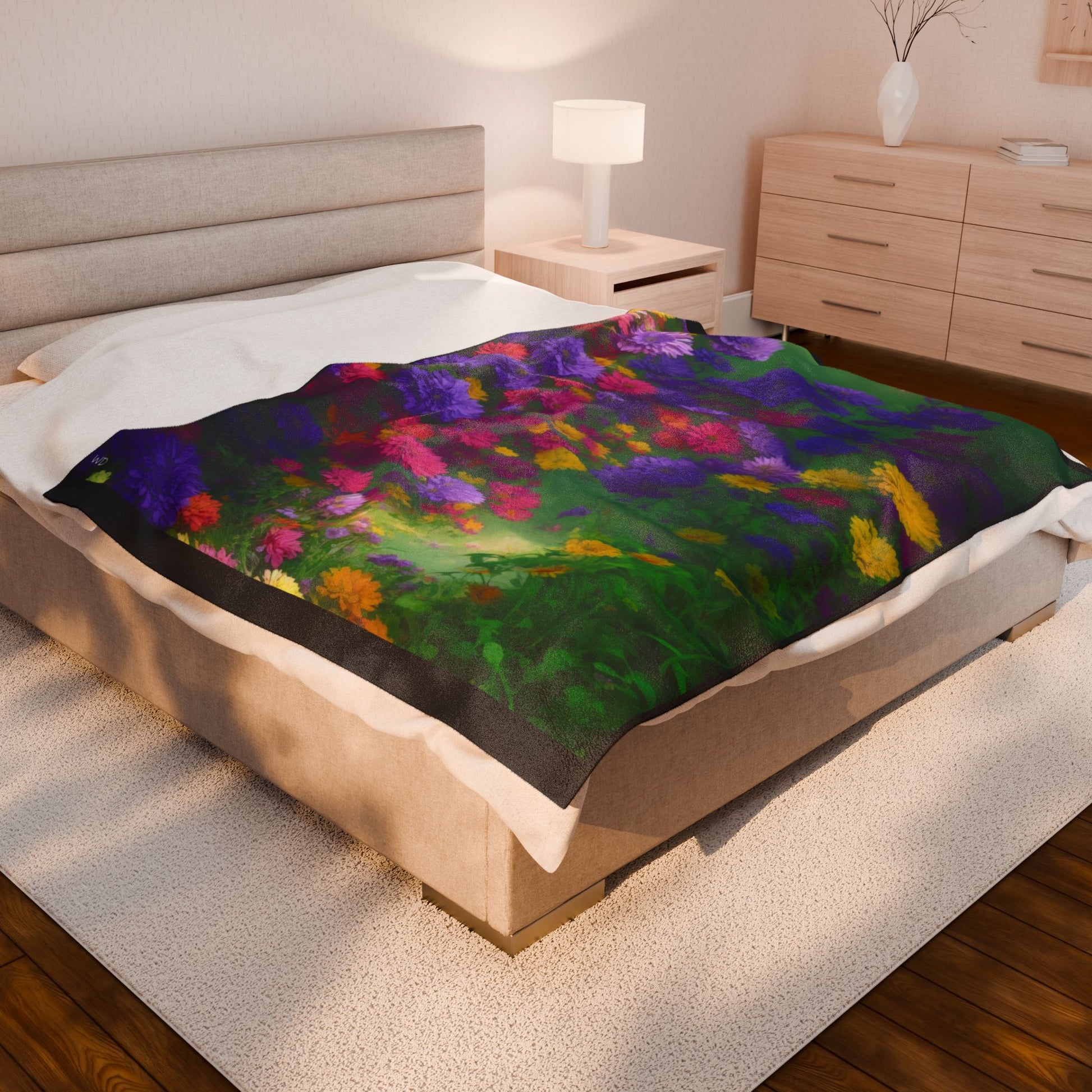 Wrap yourself in lush color and softness with this Velveteen Plush Blanket, blooming with vibrant pink, violet, yellow, and blue flowers on a fresh green background.