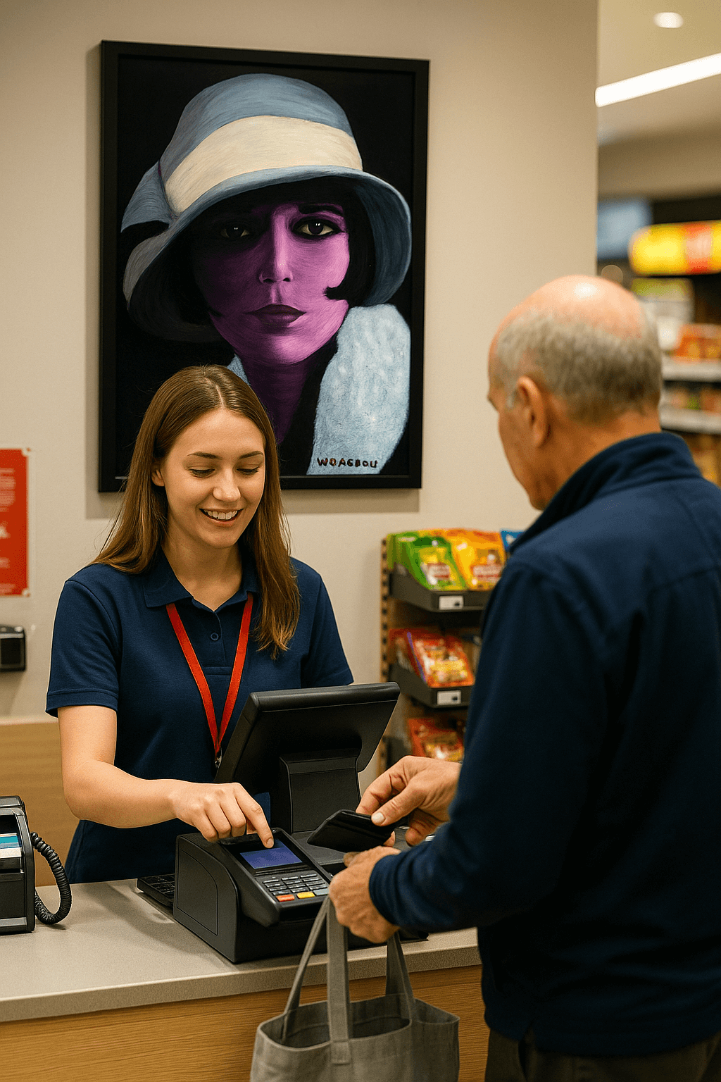 Step into the elegance of the Art Deco era with this stunning oil painting by W-Dagrou, featuring the iconic figure of Louise Brooks. With a bold violet palette and dramatic chiaroscuro effects, this digital artwork combines glamour and mystery in perfect harmony.